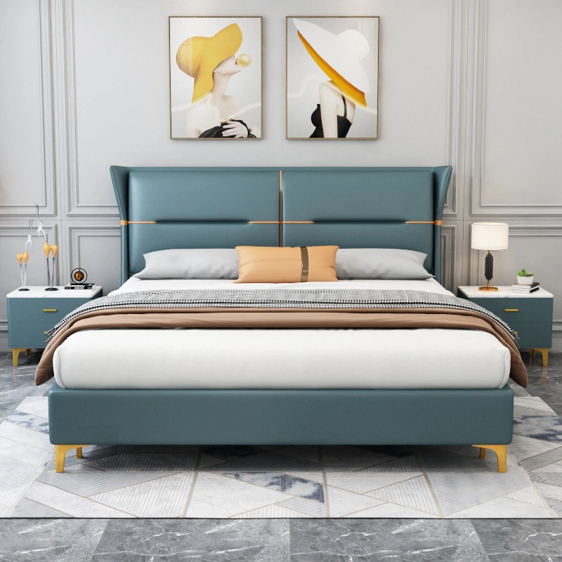 イタリアン・ラグジュアリー本革ベッド|北欧スタイルのダブルベッド|モダンでシンプルなデザイン|高級感あふれる主寝室用|一級牛革素材使用|耐久性抜群で上質な眠りをお届け!