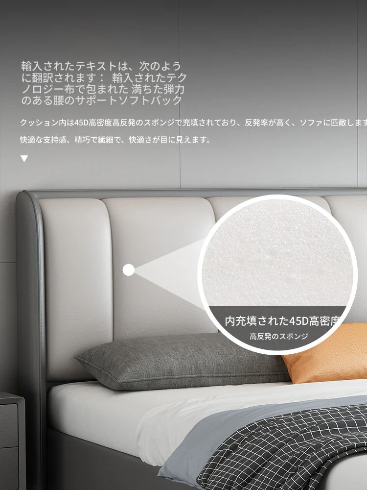 2024年新作!軽やかなラグジュアリーを体験 - モダンシンプルデザインの1.8mダブルベッド、ハイボックス収納付き、1.5m柔らかいバックレスト。主寝室にぴったりの大きなベッドで快適な睡眠をお届けします!