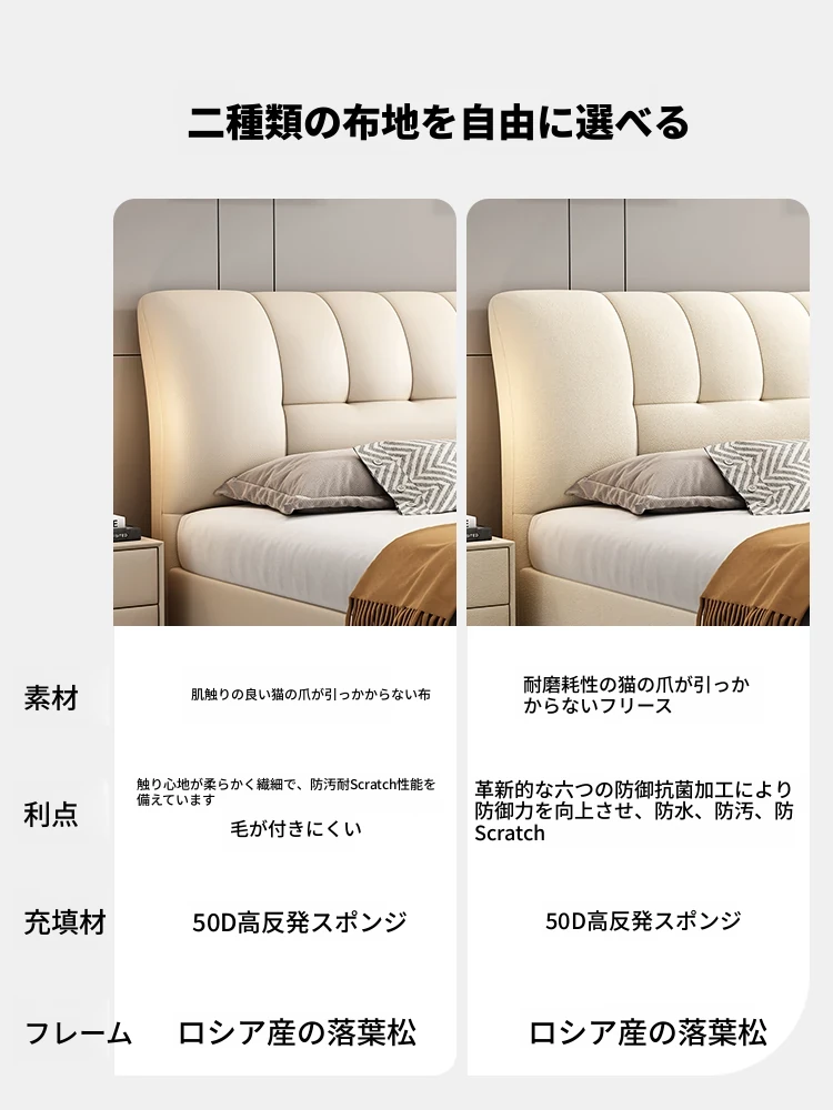 2025年新作!高級感あふれるクリーム風雪ニールベルベッド、180cmダブルベッド。主寝室に最適な収納付きファブリックベッドで、スタイリッシュな空間を演出します!