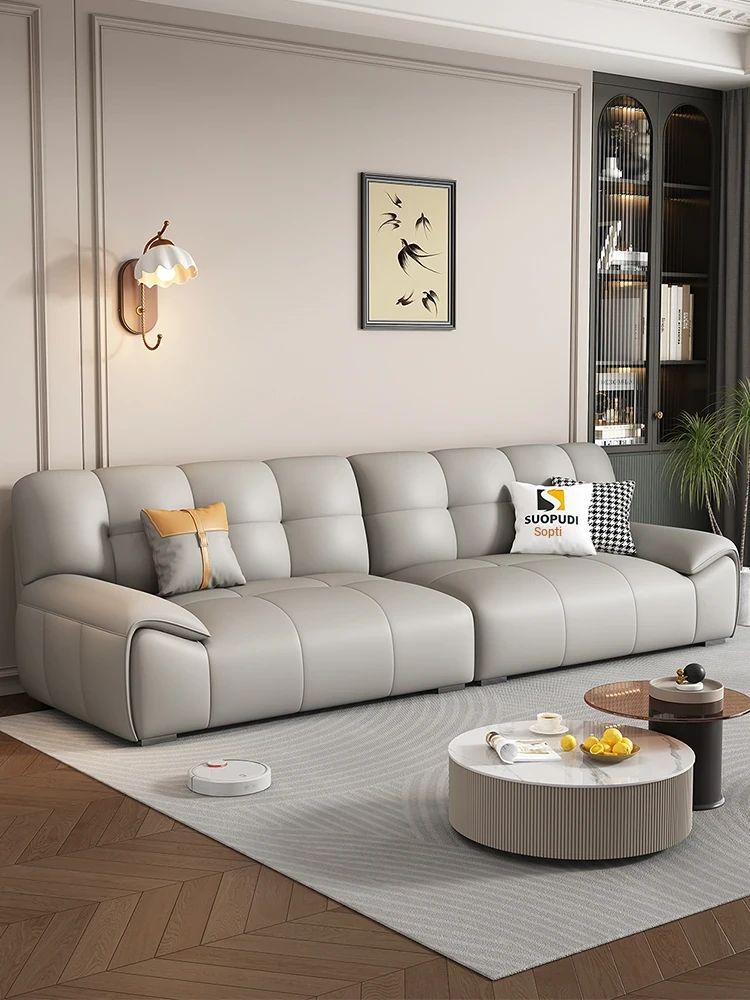 Genuine Top-Grain Leather Sofa 2024: Modern Minimalist Nordic Chaise Lounge for Small Spaces – Luxurious Latex Comfort for Your Living Room