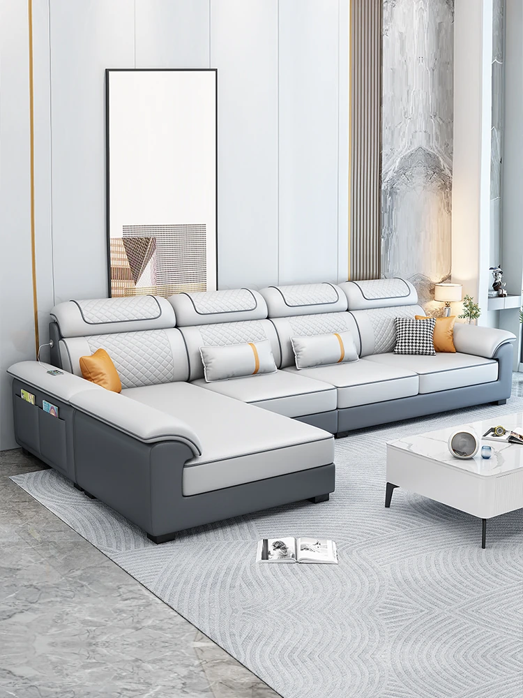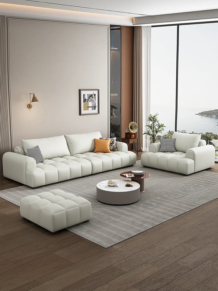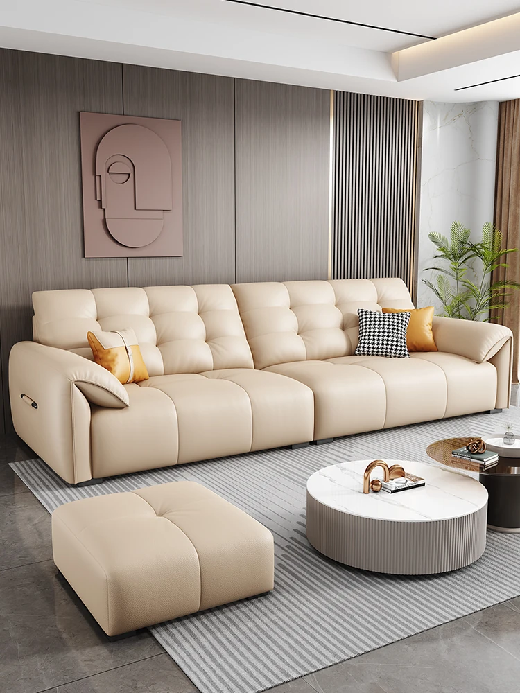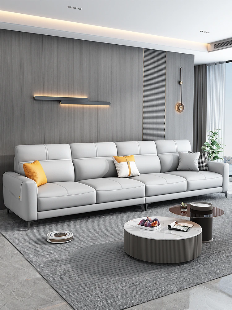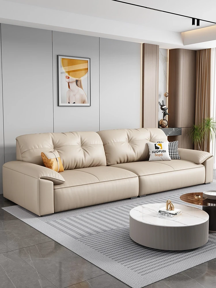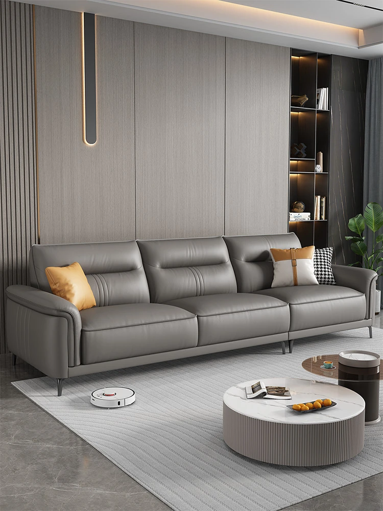 2025 New Arrival: Modern Minimalist Top Grain Leather Sofa for Living Room – Luxurious Straight-Row Design Perfect for All Space Sizes