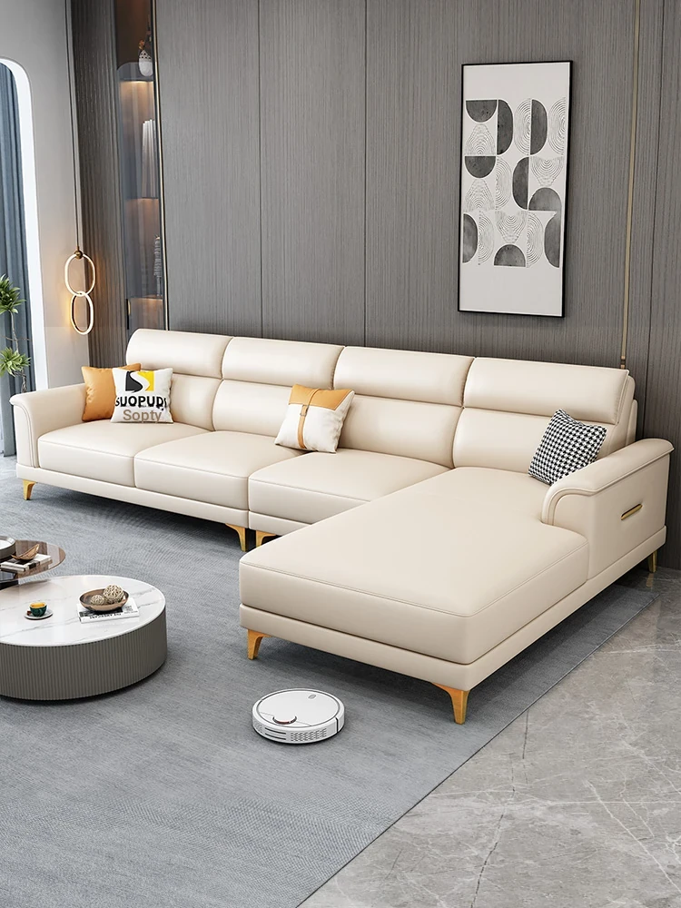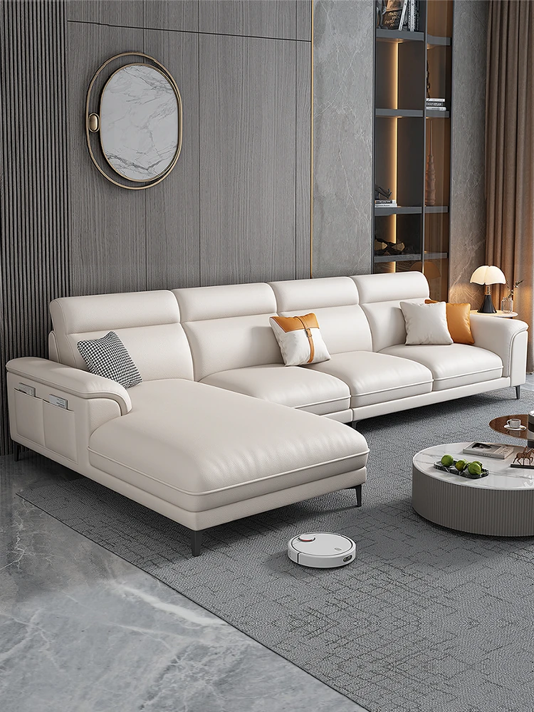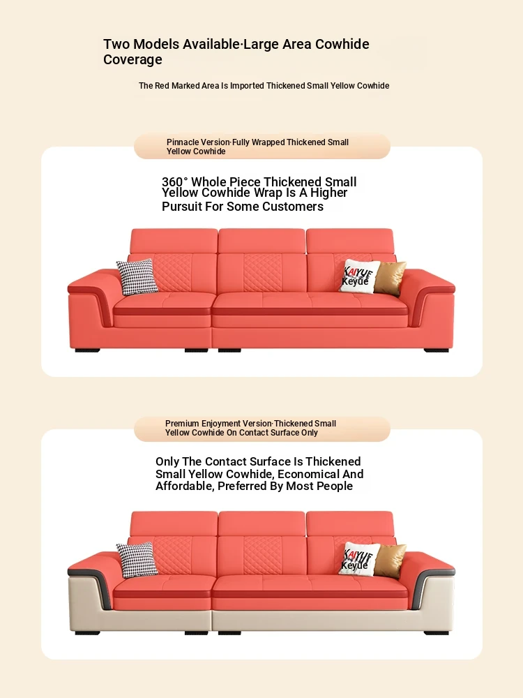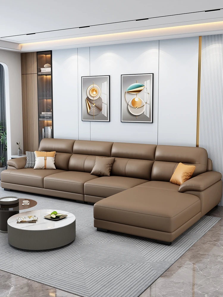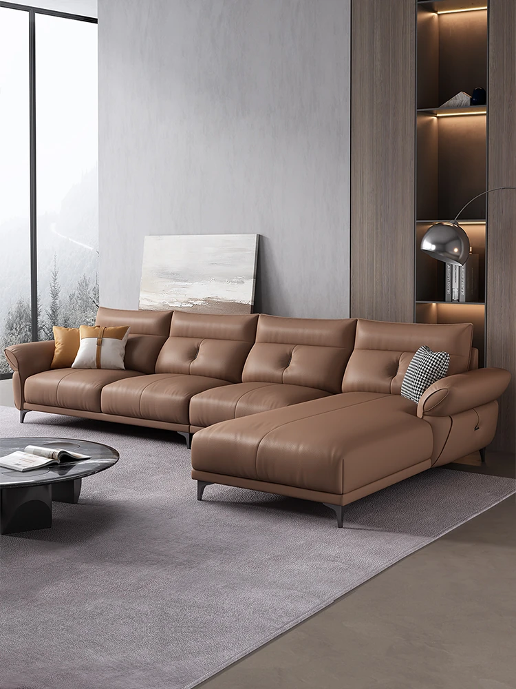 Scandinavian Genuine Leather Sofa - Modern Minimalist Chaise Lounge for Living Room, Top Grain Cowhide, 2025 New Arrival Sofa Set