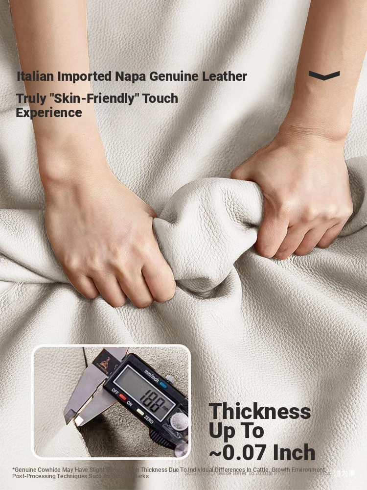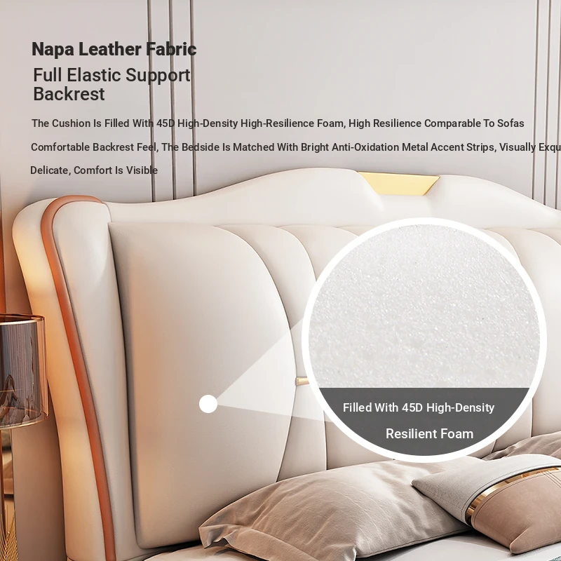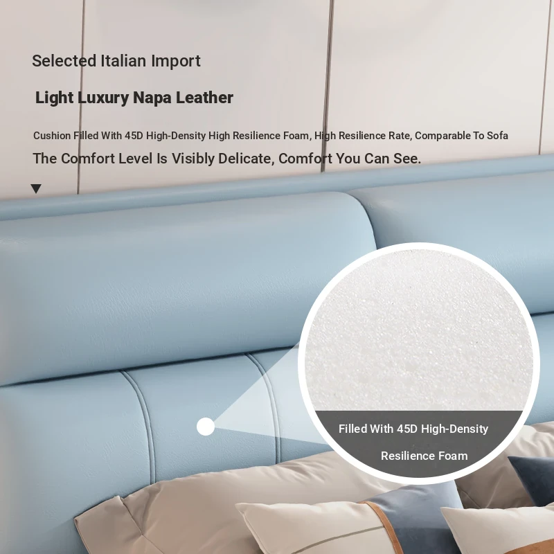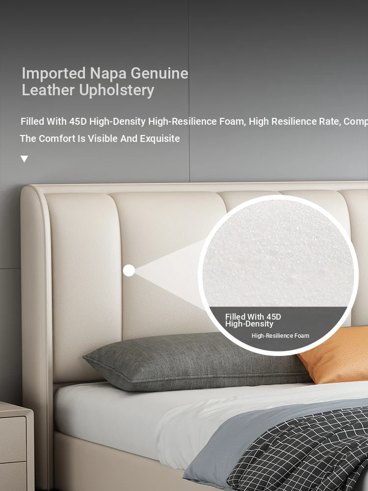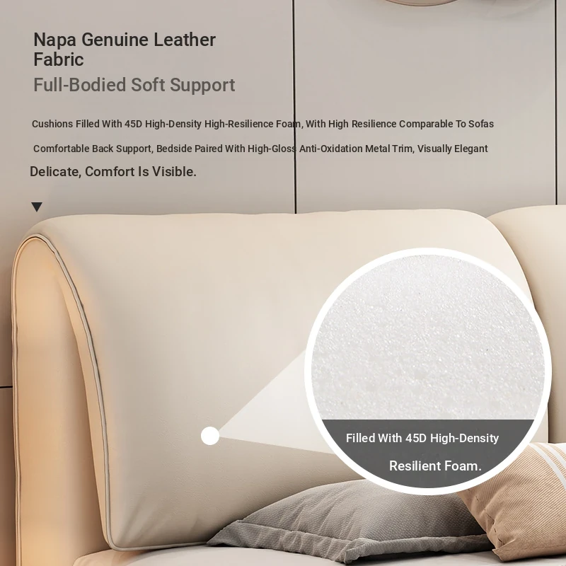 Nordic Napa Genuine Leather Bed - Modern Minimalist Design, Solid Wood Double Bed with Multi-functional Soft Backrest, Storage Features - Luxurious, Comfortable Master Bedroom Essential