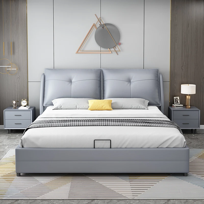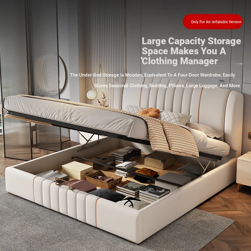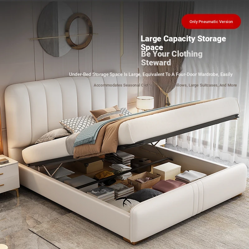 2023 New Luxurious Genuine Leather Bed - Modern Minimalist Design for Master Bedroom, 1.8m Upholstered High-Storage Double Bed with Soft Headboard