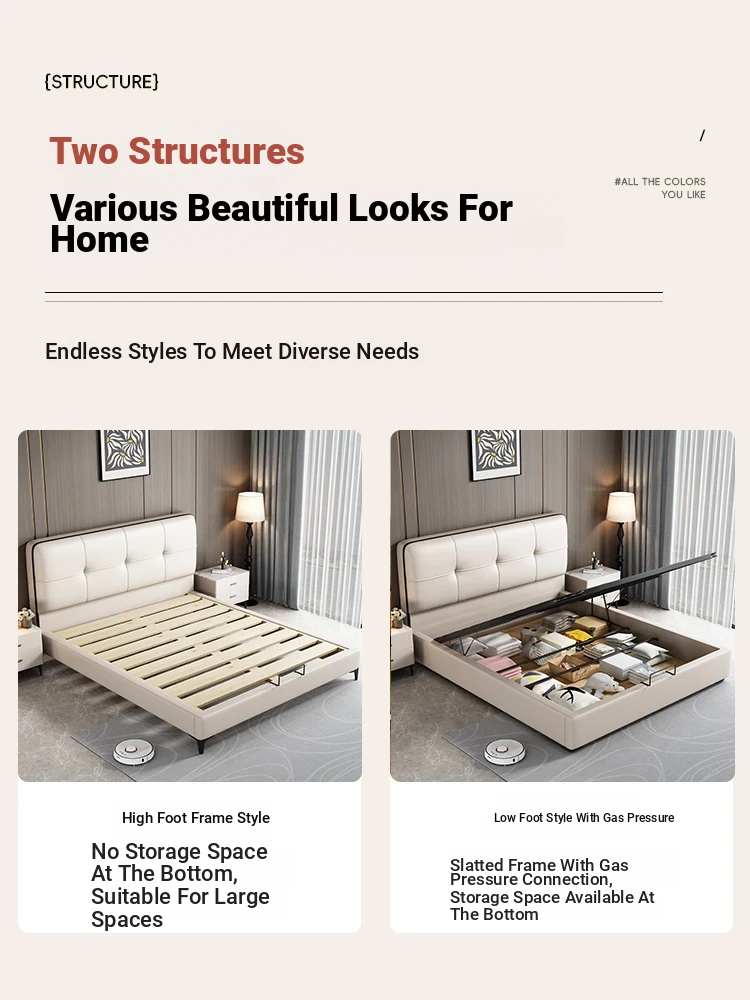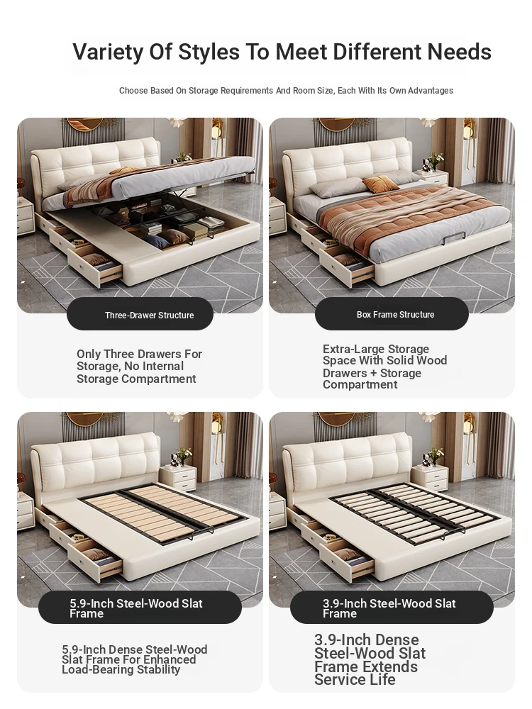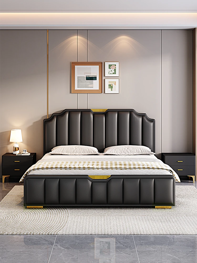 2025 New Luxury Genuine Leather Bed for Master Bedroom - Modern Minimalist Design, Available in 1.8m Double Bed and 1.5m Solid Wood Storage Bed, Perfect for Elegant Living Spaces.