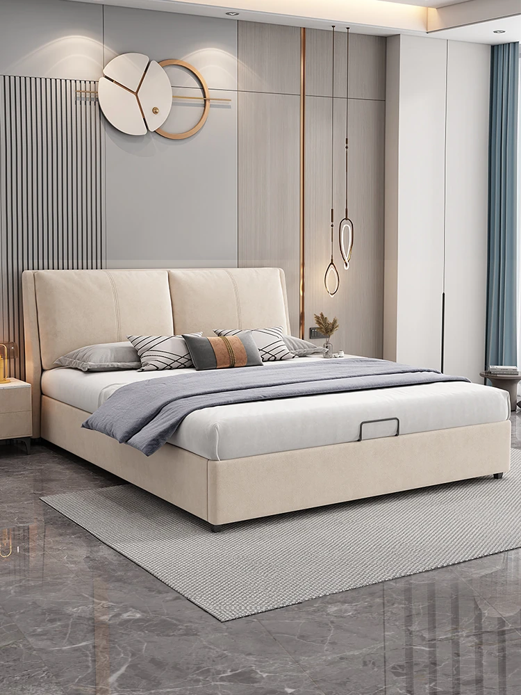 Nordic Style Tech Fabric Bed – Minimalist Modern Double Bed with Soft Backrest & Storage for Compact Spaces – Luxurious and Elegant Design for Master Bedrooms and Newlyweds