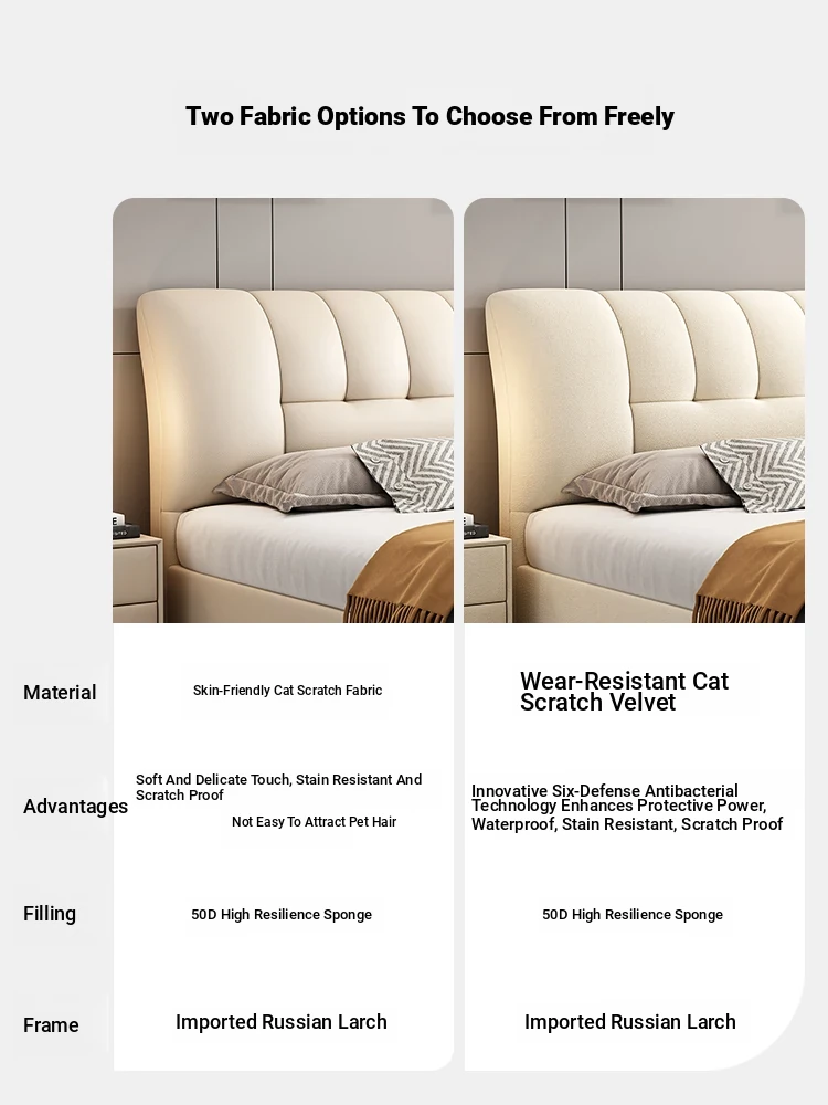 2024 New Nordic Style Cat Scratching Fabric Bed - Minimalist Modern 1.8m Soft Back Rest Wooden Double Bed for Master Bedroom - Perfect Blend of Comfort and Style!