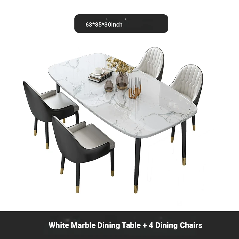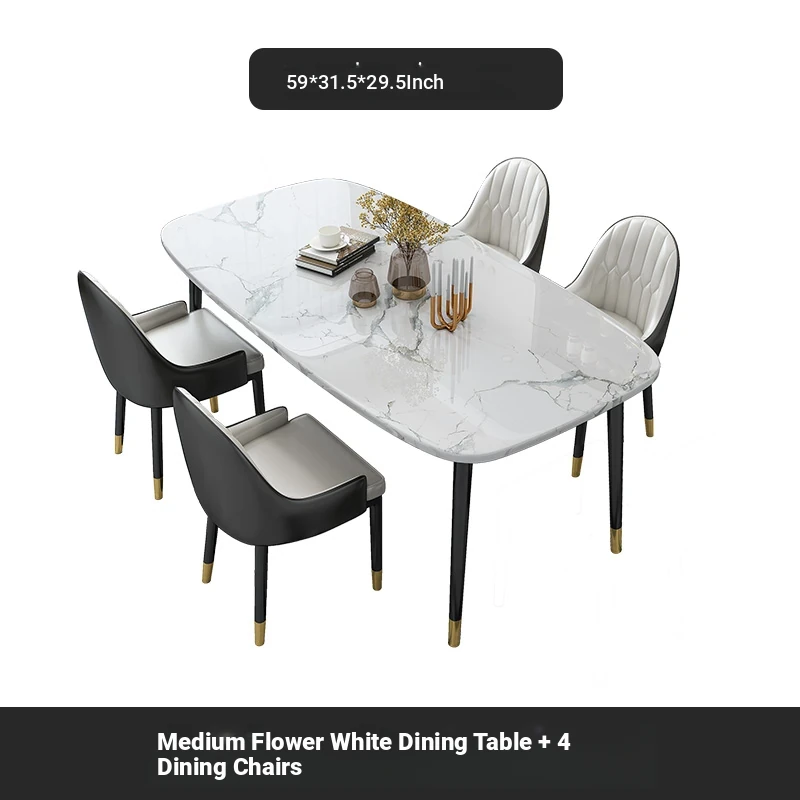 55.12 in single dining table (medium white super crystal stone) +4 chairs