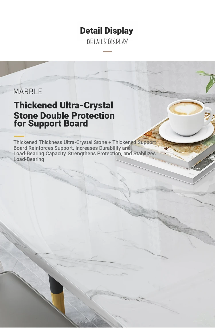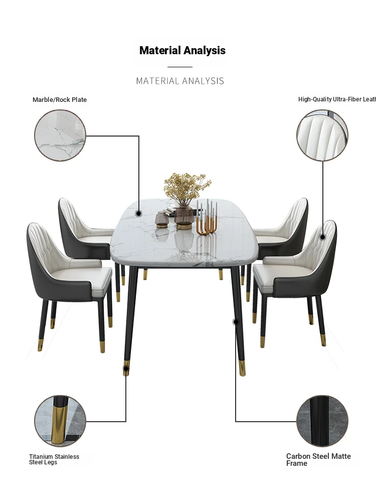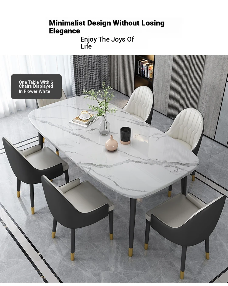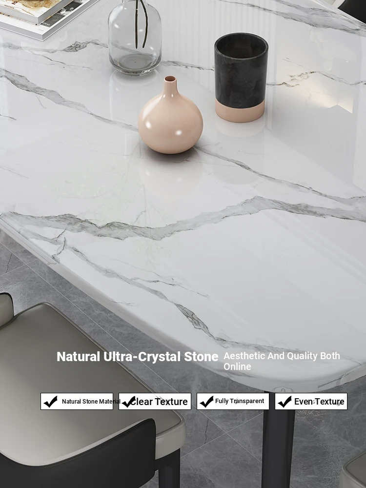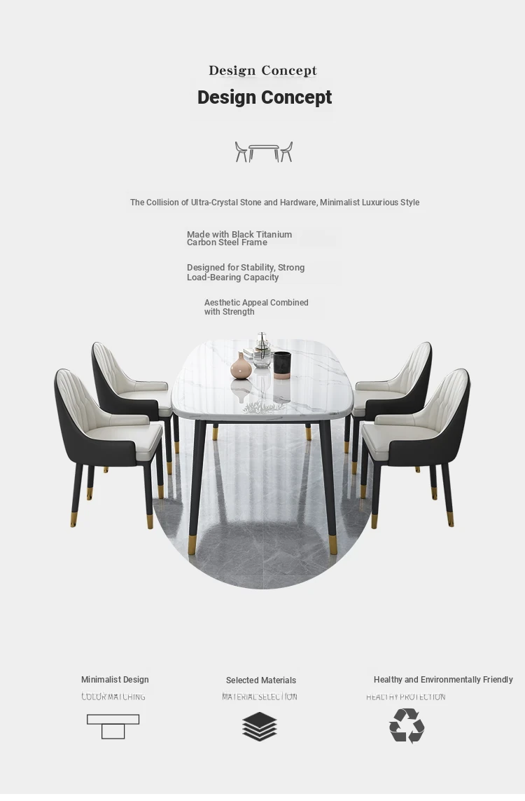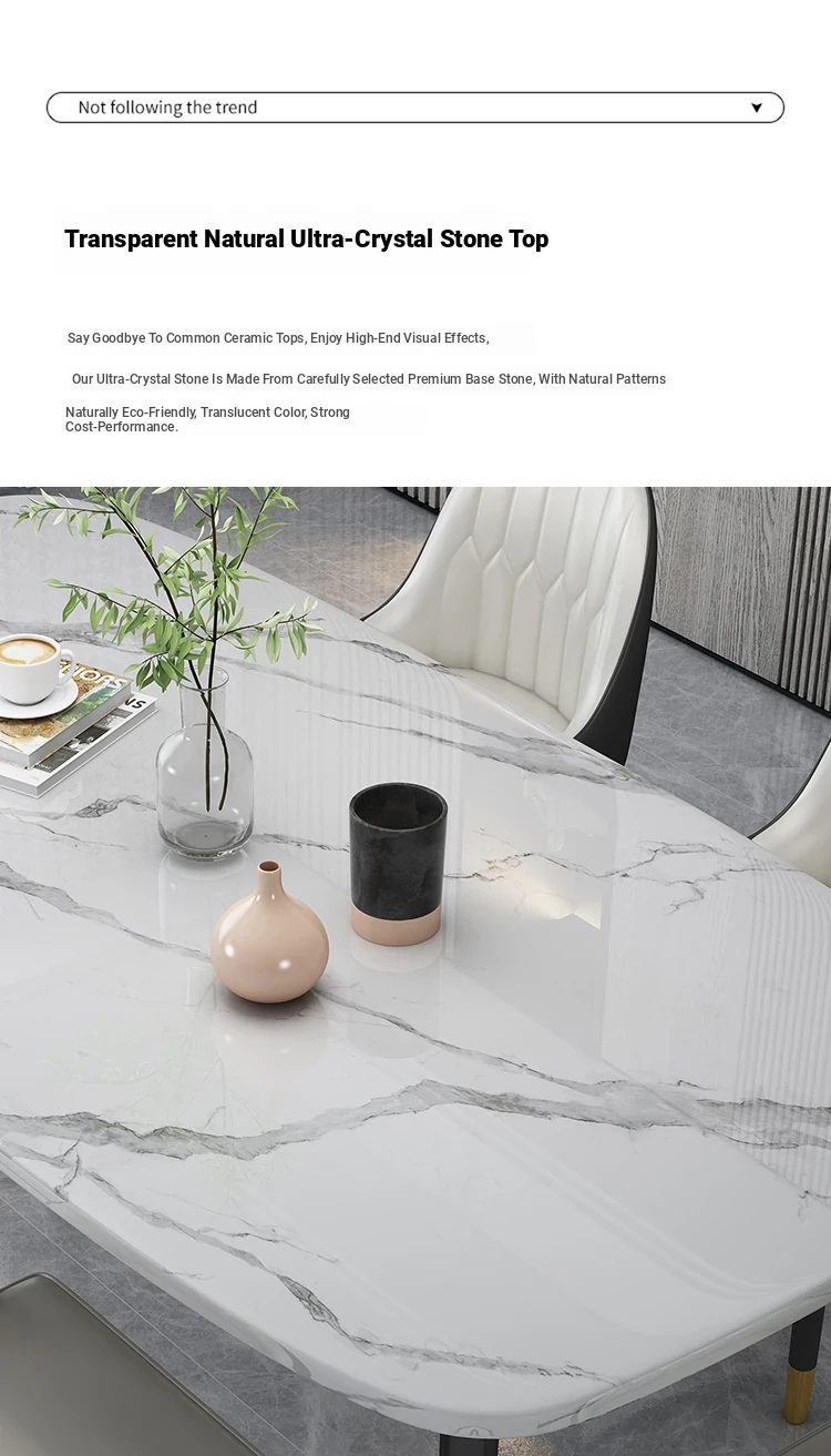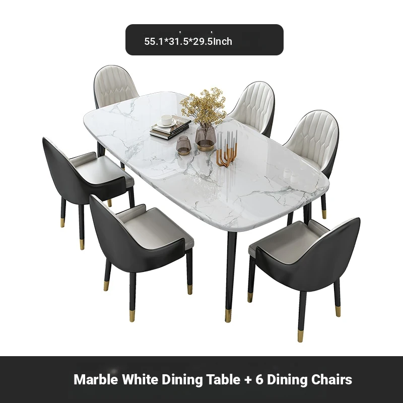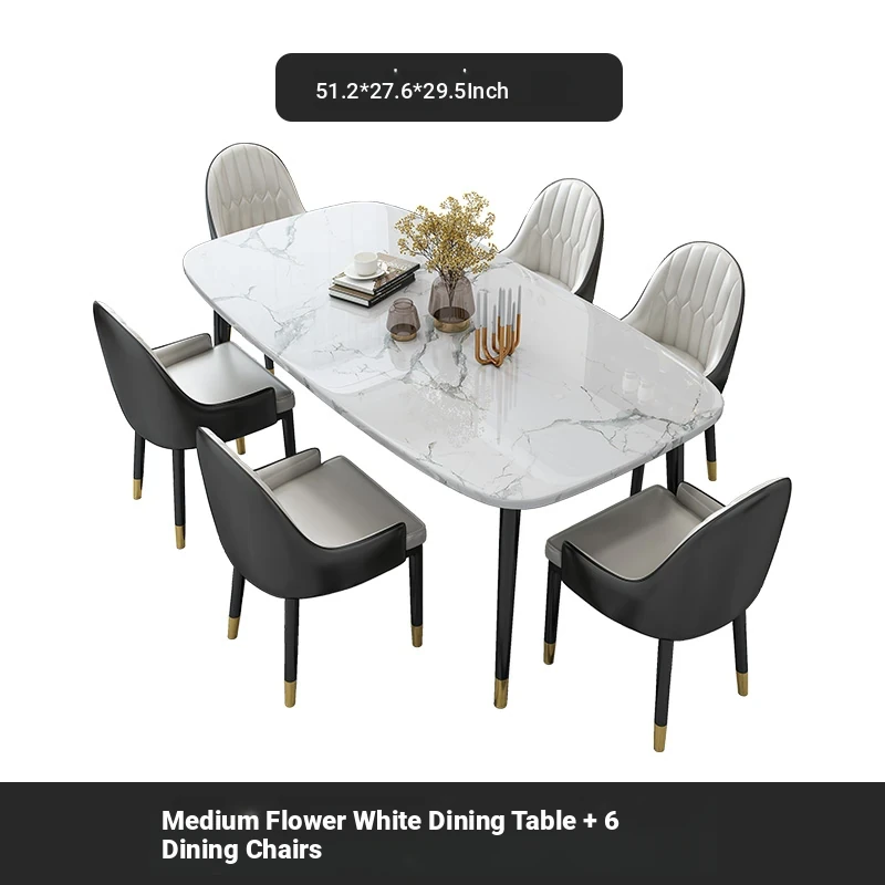 51.18 in single dining table (medium white super crystal stone) +6 chairs