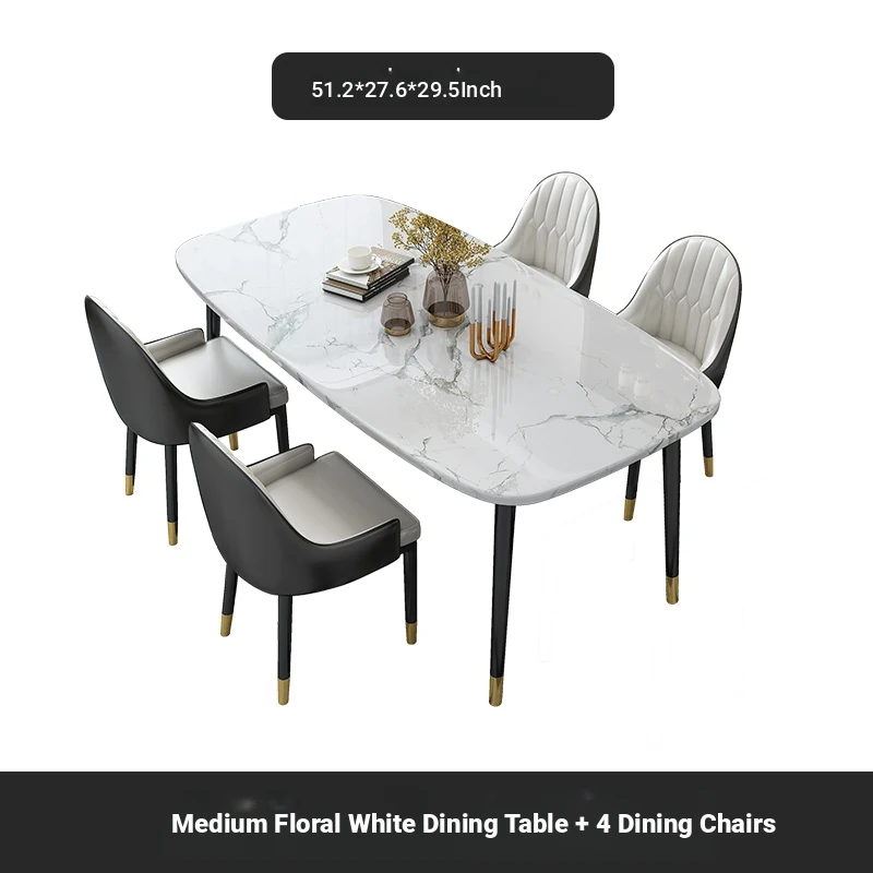 51.18 in single dining table (medium white super crystal stone) +4 chairs
