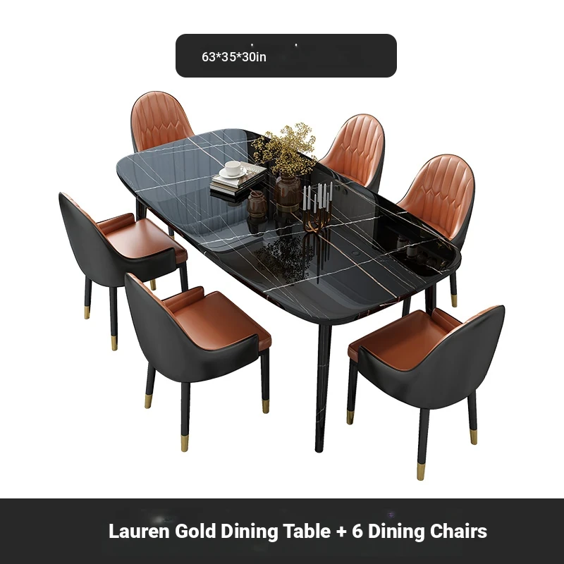 55.12 in single dining table (Laurent gold superspar) +6 chairs